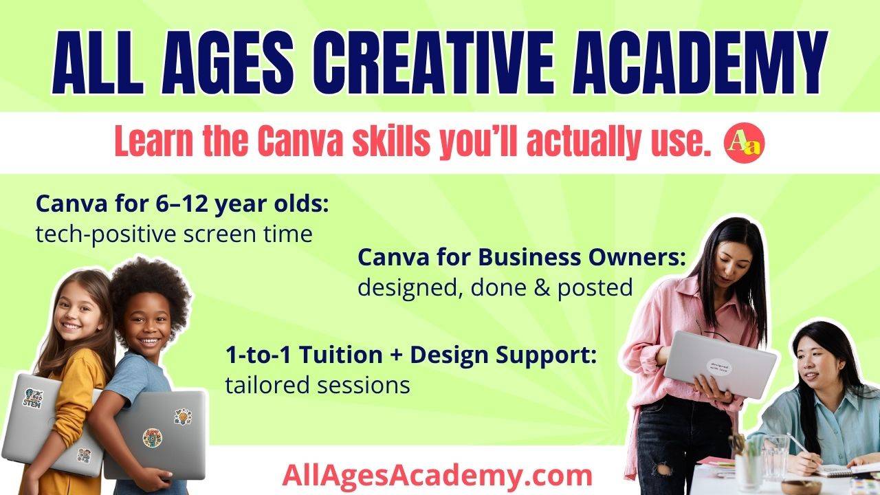AACAÂ courses and 1-1 sessions - for both adults and kids - are about you building real literacy and ease with Canva and design.Â